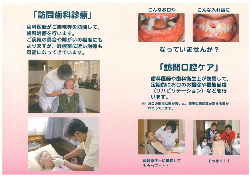 また治療だけでなく、定期的に歯科医師や歯科衛生士が訪問し、お口のお手入れやリハビリをする、
